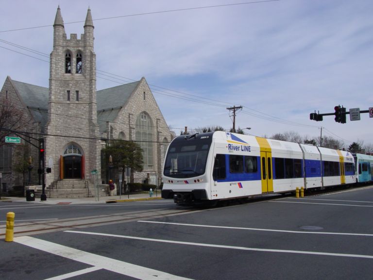 The River LINE in New Jersey was opened in May 2004. The service is operated by the Southern New Jersey Rail Group (SNJRG), a consortium of Bechtel Group and Bombardier. The 20 stations on the line include PATCO SpeedlineA?ai??i??ai???s Broadway Station, which allows for transfers to service to Philadelphia. The River LINE uses a proof of payment system with a flat fare of $1.35. Service is offered on a 15 minute peak headway and 30 minute off peak headway. Much of the line is single track with passing sidings.