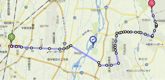The line will have 19 stations, four of which will be located in Haga with the remainder in Utsunomiya. Passing loops will be constructed at two stations to enable express services to overtake all-stations local services. The journey time between the terminus stations will be 38 minutes for express services and 44 minutes for locals.
