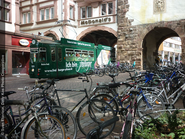 IAi??couldn’t resist. In Freiburg Germany, trams co-exist with bicycles and buildings, without the doom and gloom and general transportation chaos predicted by the SkyTrain (a.k.a. metro) lobby.