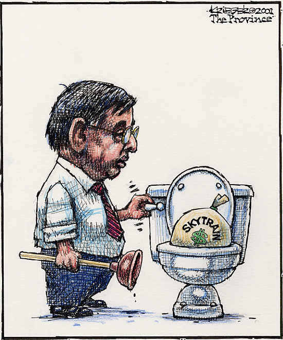 It is terribly sad to see the media stooges focus their attention on ways to fund TransLink when an inquiry into the collusion of provincial and municipal politicians using TransLink to fill their pockets is in order. Drivers are being taxed to create a business where expensive contracts are being awarded to SNC-Lavalin (whose CEO was arrested recently and charged with fraud) and Bombardier.