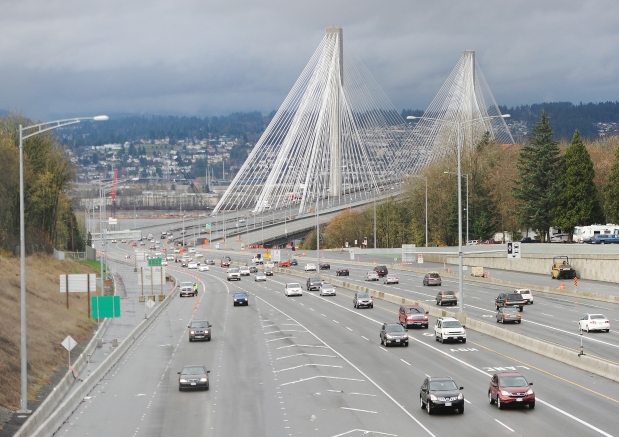 There is no transit lane on the bridge. The bridge isn’t even finished at either end, and does not have all of the lanes. There probably will be a transit/or hov lane when it is done but that is not there yet. It doesn’t need it anyways, the bridge is wide enough that transit doesn’t get held up, traffic is held up at choke points that simply moved further down when the bridge widened.