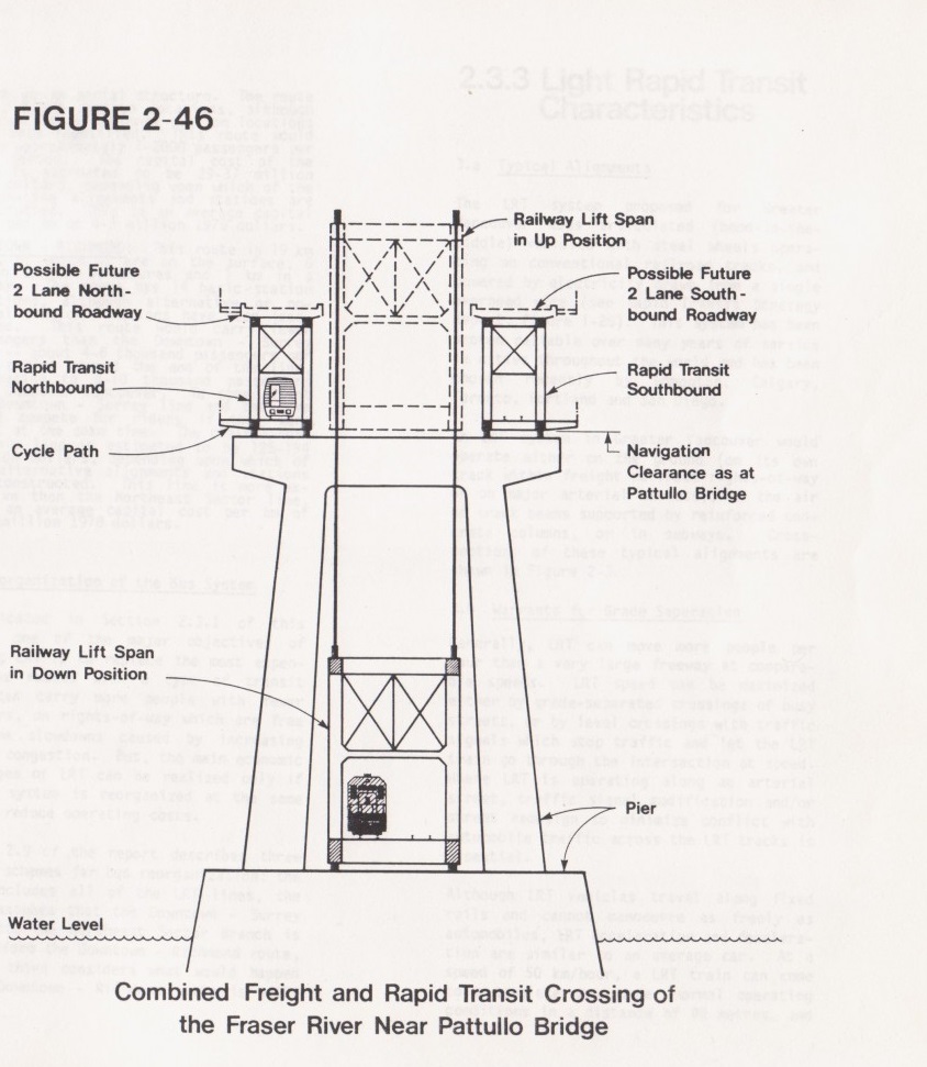 The GVRD's 1970's preliminary plan for a road/rail bridge replacing both the Pattullo and Fraser River Rail Bridges