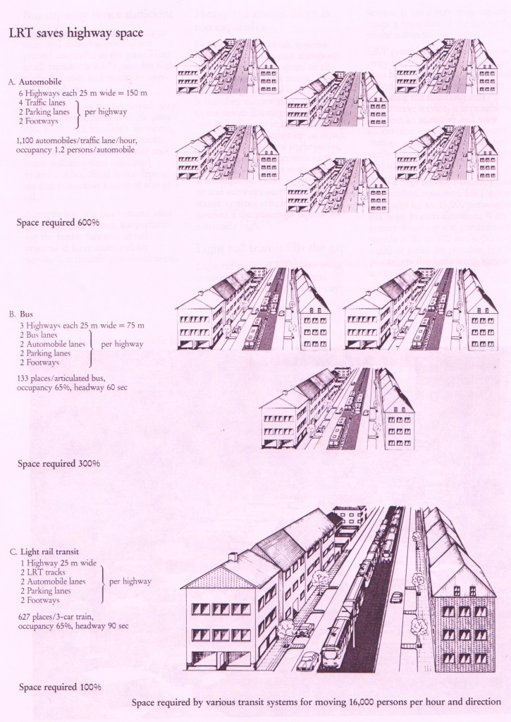 Self explanatory, it gives a good visual how modern LRT saves highway space. It also shows that modern LRT could be built on Broadway and still provide road space for autos and with parking.