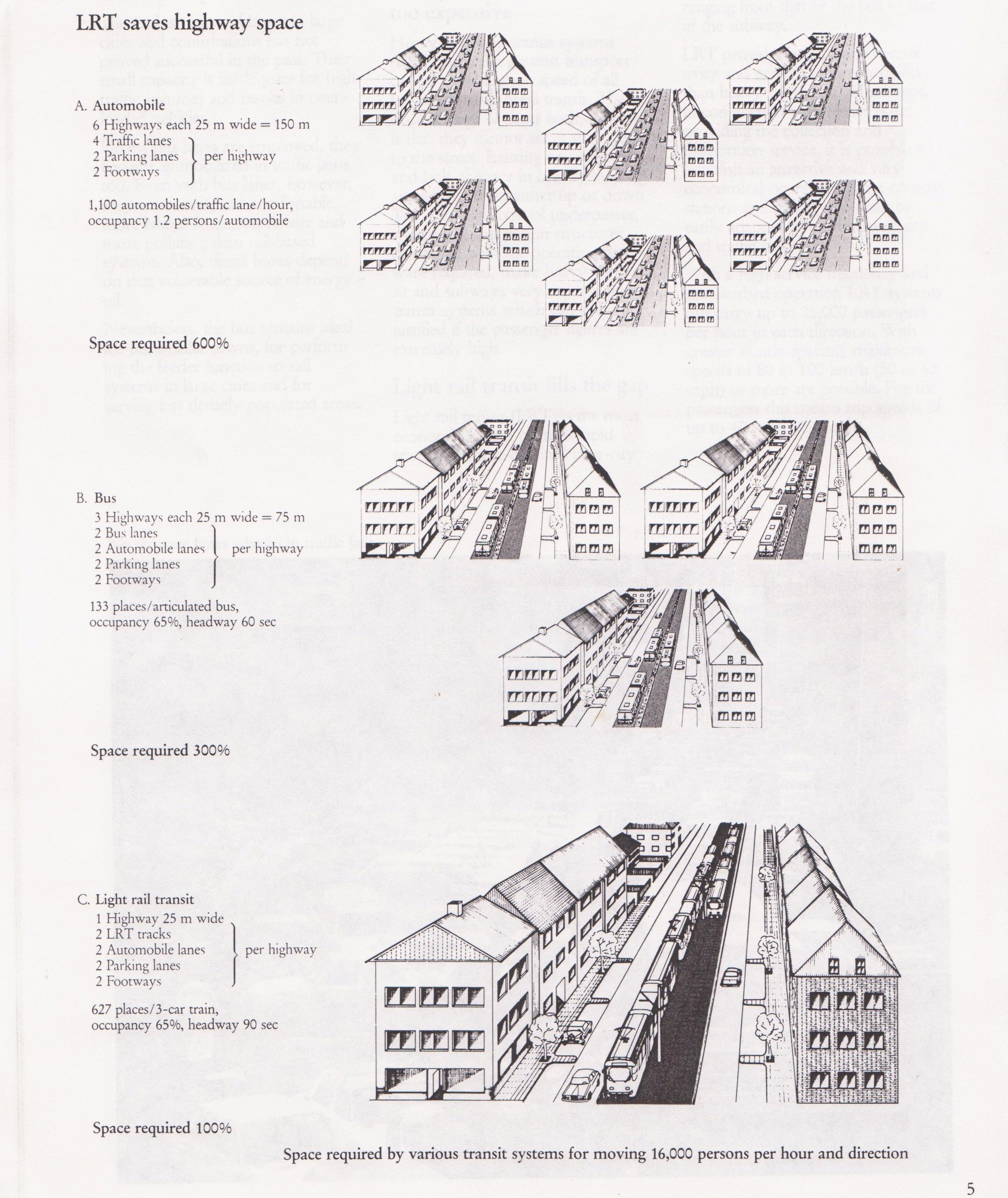 Any road based rapid transit system like a surface LRT line will take away traffic lanes unless the LRT right of way is on one side of the road right of way. However BRT operating at grade will do the same thing as a LRT and generally cost more to operate than LRT as long as the capacity of the system’s are similar. The point being is that, general traffic lanes are not that efficient at moving people compared to most forms of rapid transit.