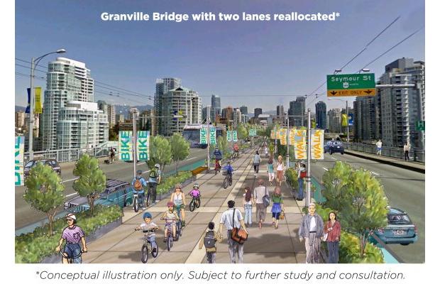 Pretty pictures of people crossing on a pedestrianized Granville St. Bridge, just won’t sell in the winter months, where wind and snow, will force people back into cars.