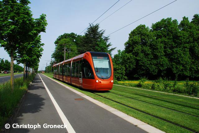 This is an interesting U-Tube of the TransLohr GLT or guided bus. The centre rail is for guidance only as the tram like bus is propelled by standard rubber tires. [youtube=http://www.youtube.com/watch?v=lTJgh50vuuw]